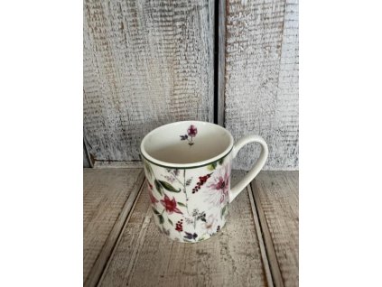 Keramický hrneček světle šedivý s květinami