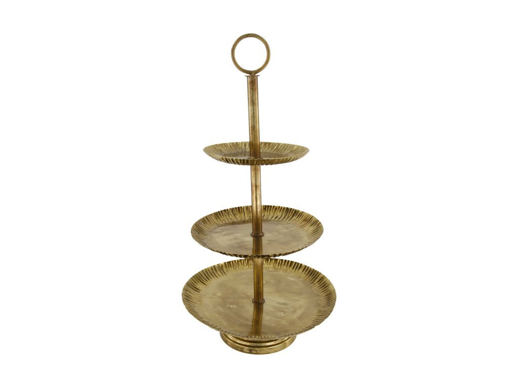 Etažér kovový starozlatý - pr.25/v.47 cm.
