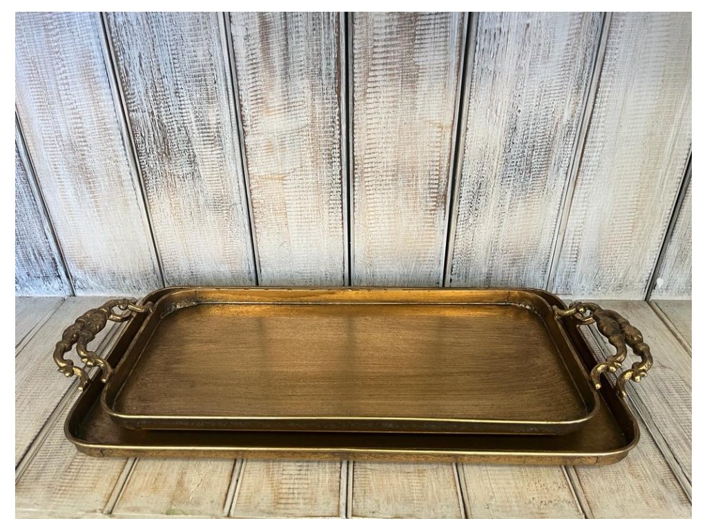 Kovový tác obdélníkový s rukojetí malý - 48x18,5/v.3cm.