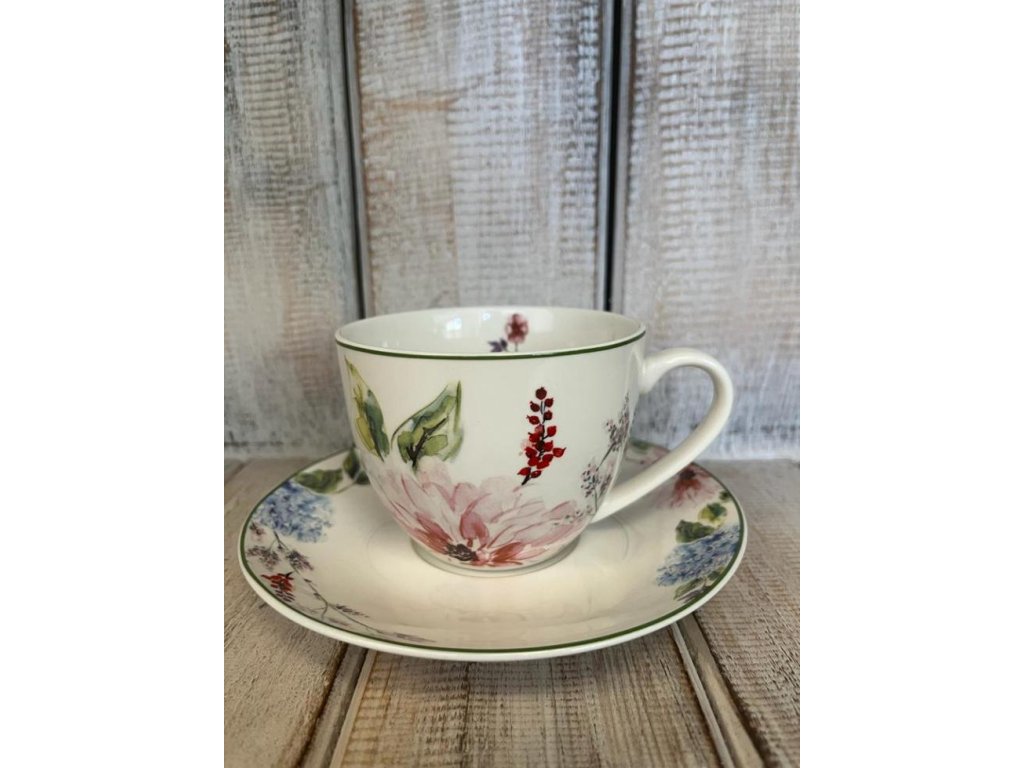Porcelánový šálek s podšálkem - louka, pr.9/v.7,5/objem 0,2l.