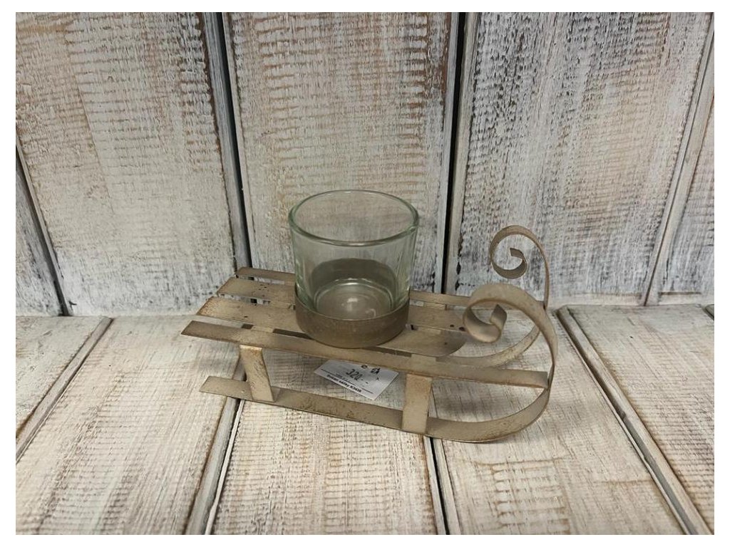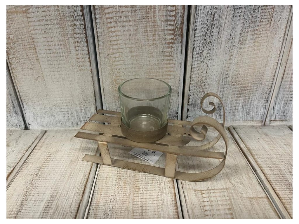 Sáňky svícen kovový zlatavý - 15x6/v.8,5 cm.