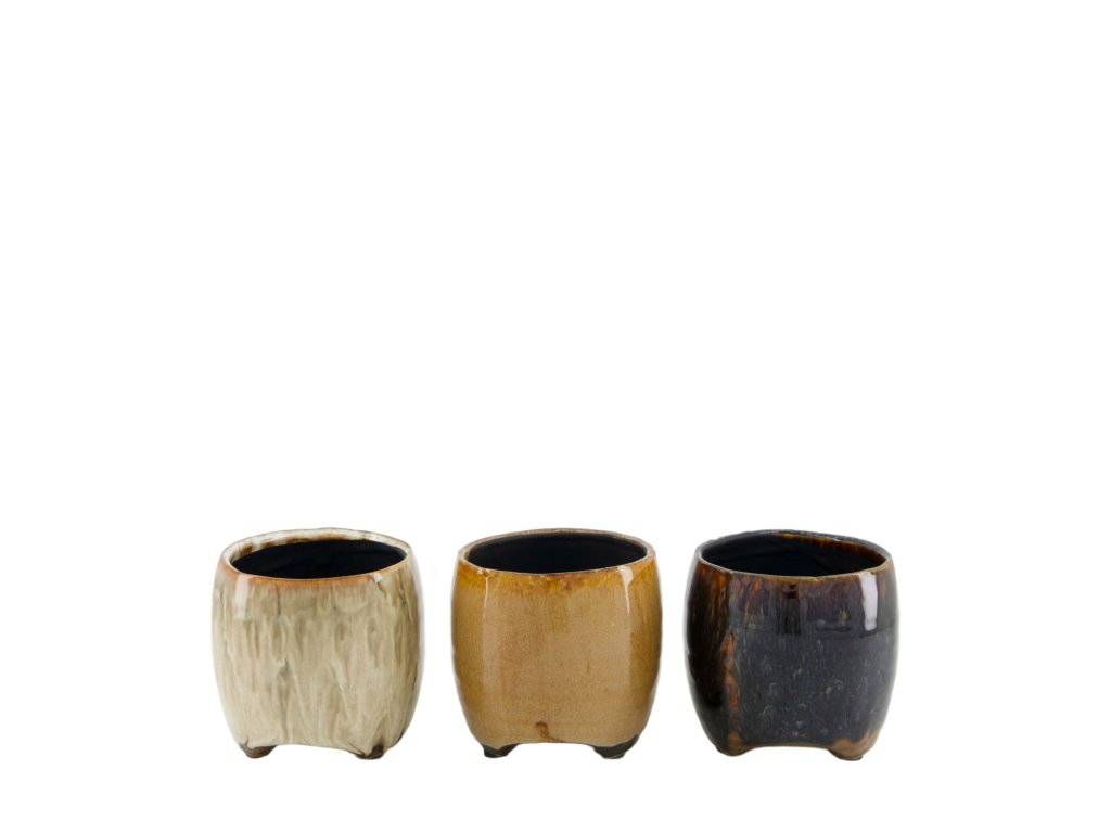 Set 3ks keramických květináčů středních mix - pr.10,5/v.10,5 cm.