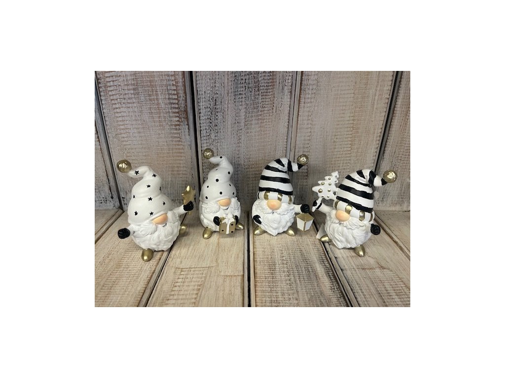 Skřítek polyresin černo/bílo/zlatý 4 druhy pr.5/v.10cm - hvězda/dárek/lucerna/stromek - uvedená cena je 1 kus.