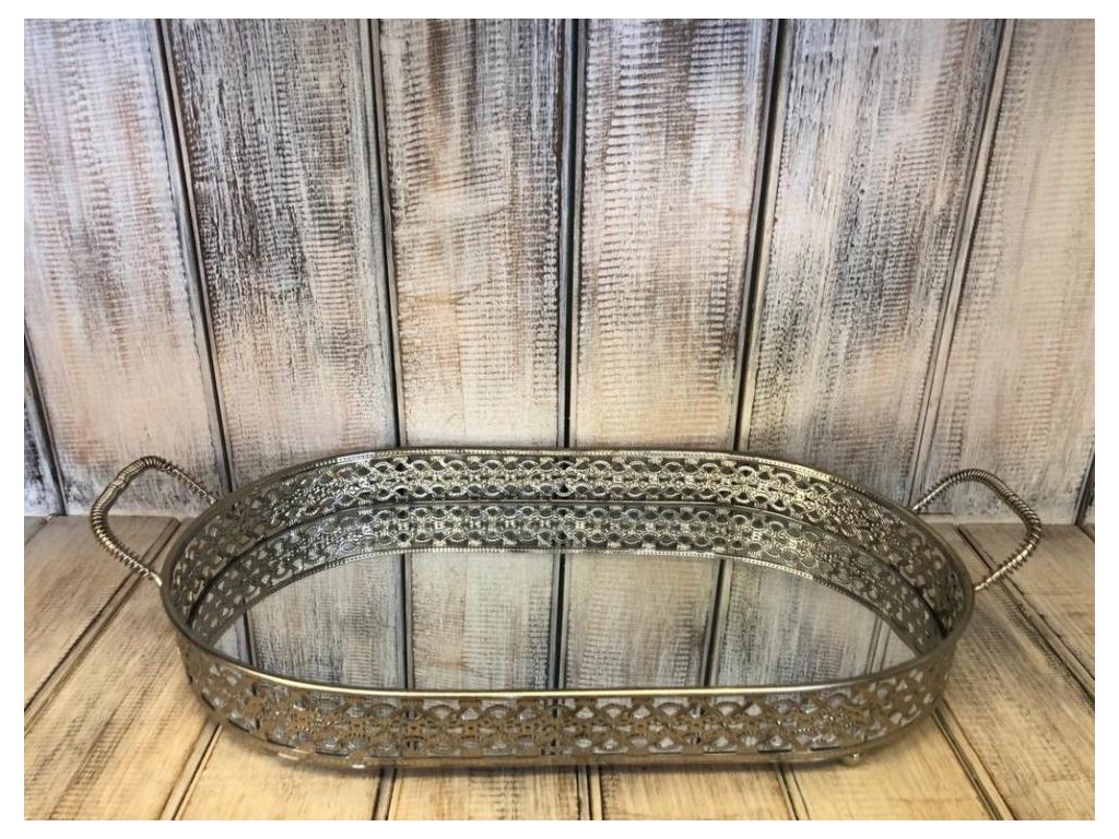 Tác kovový se zrcadlem velký. Rozměr 40x23/v.4,5 cm.