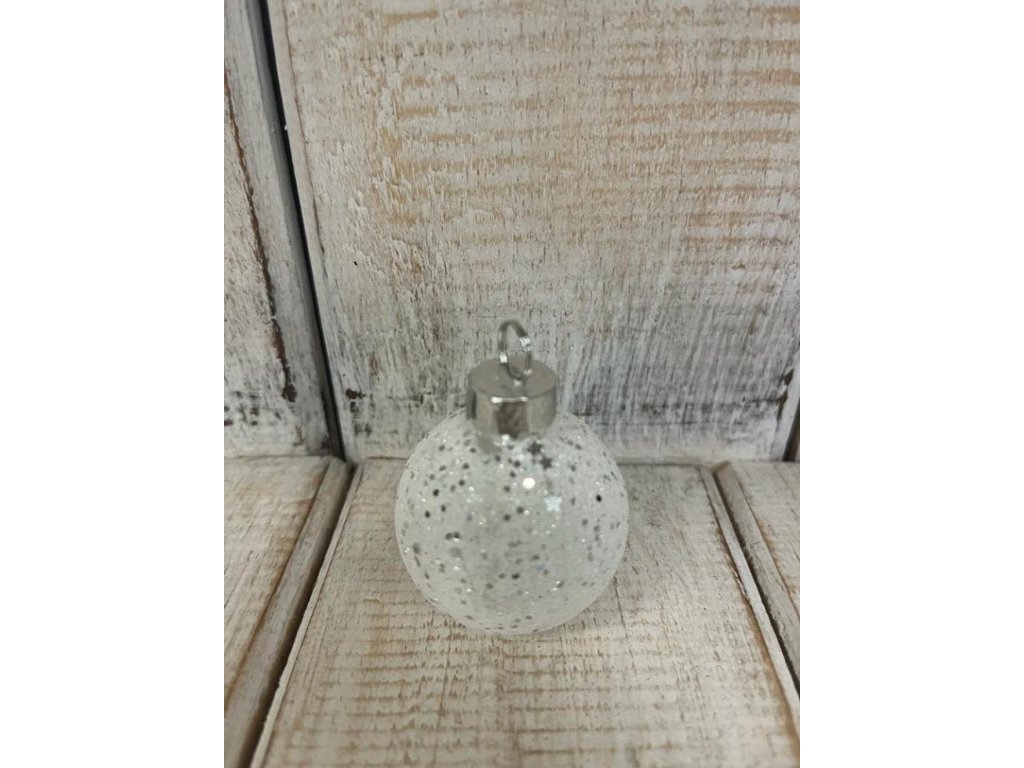 Vánoční ozdoby skleněné bílo/stříbrné - set 6ks pr.4cm. Uvedená cena je za celé balení.